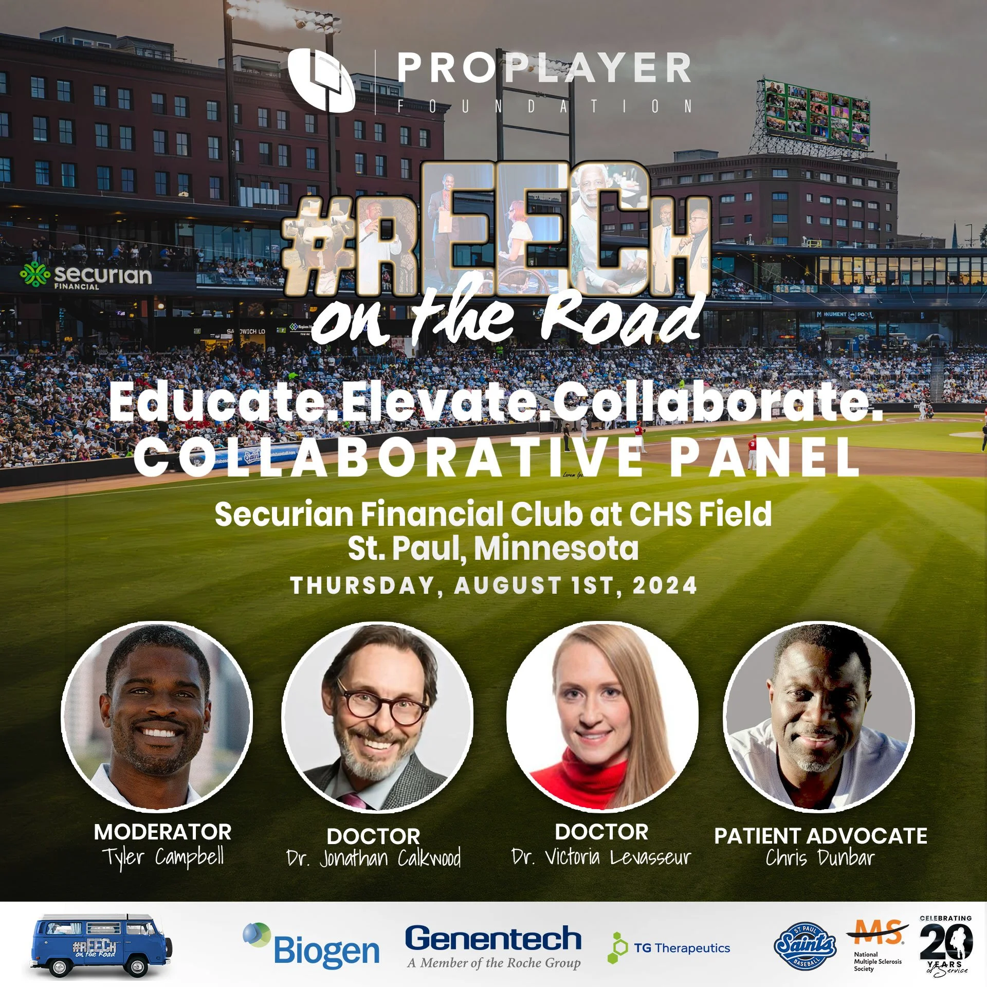 Tyler Campbell kicked off rEECh on the Road Minnesota with our 7th rEECh Panel at 7:00 pm. We will celebrate our community and commitment to combating MS with a Meet & Greet at 6:00 p.m. with Tyler Campbell and renowned neurologists Dr. Jonathan Calkwood, Dr. Victoria Levasseur and professional bodybuilder and Patient Advocate Chris Dunbar.